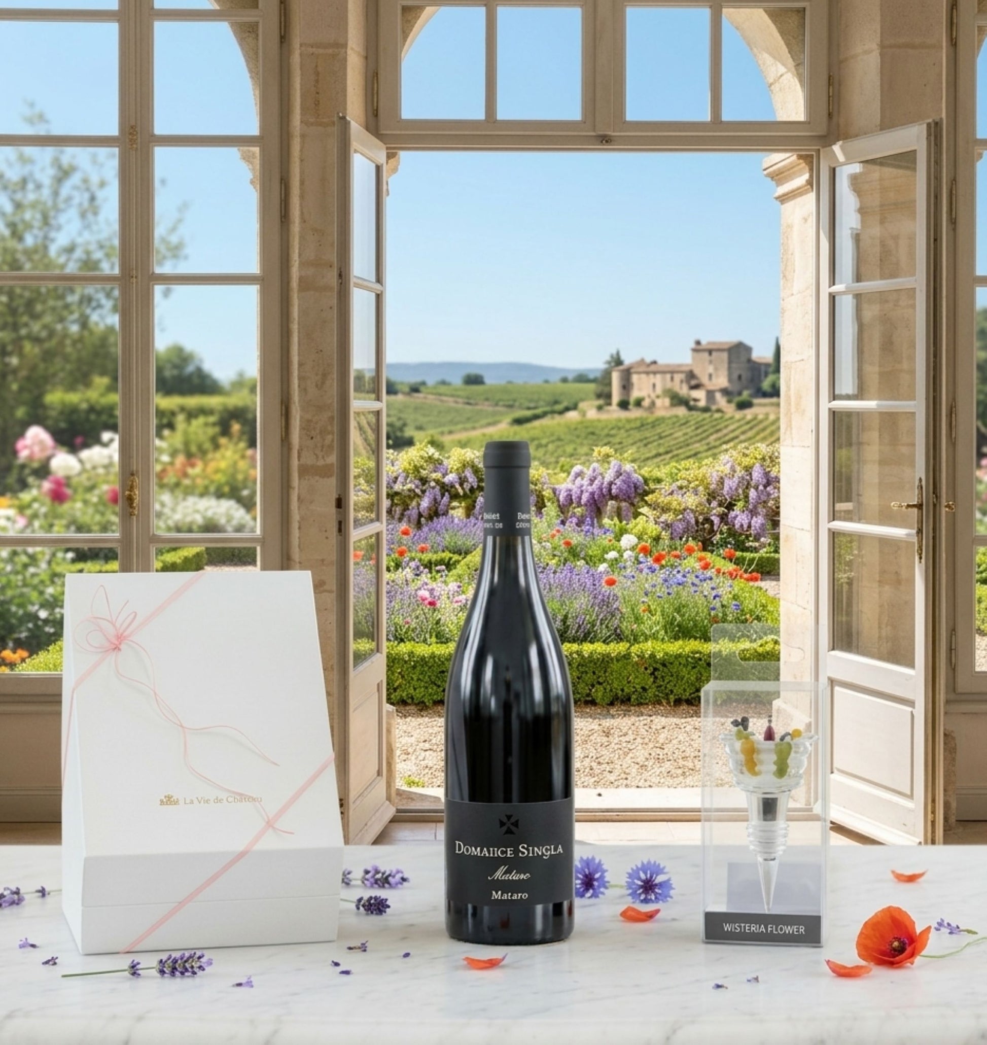春の陽光に映える純白のボックスに、南仏の力強さと気品を秘めた『マタロウ』と便利なボトルストッパーを添えて。贈る方のセンスが光る特別なギフトセットです。