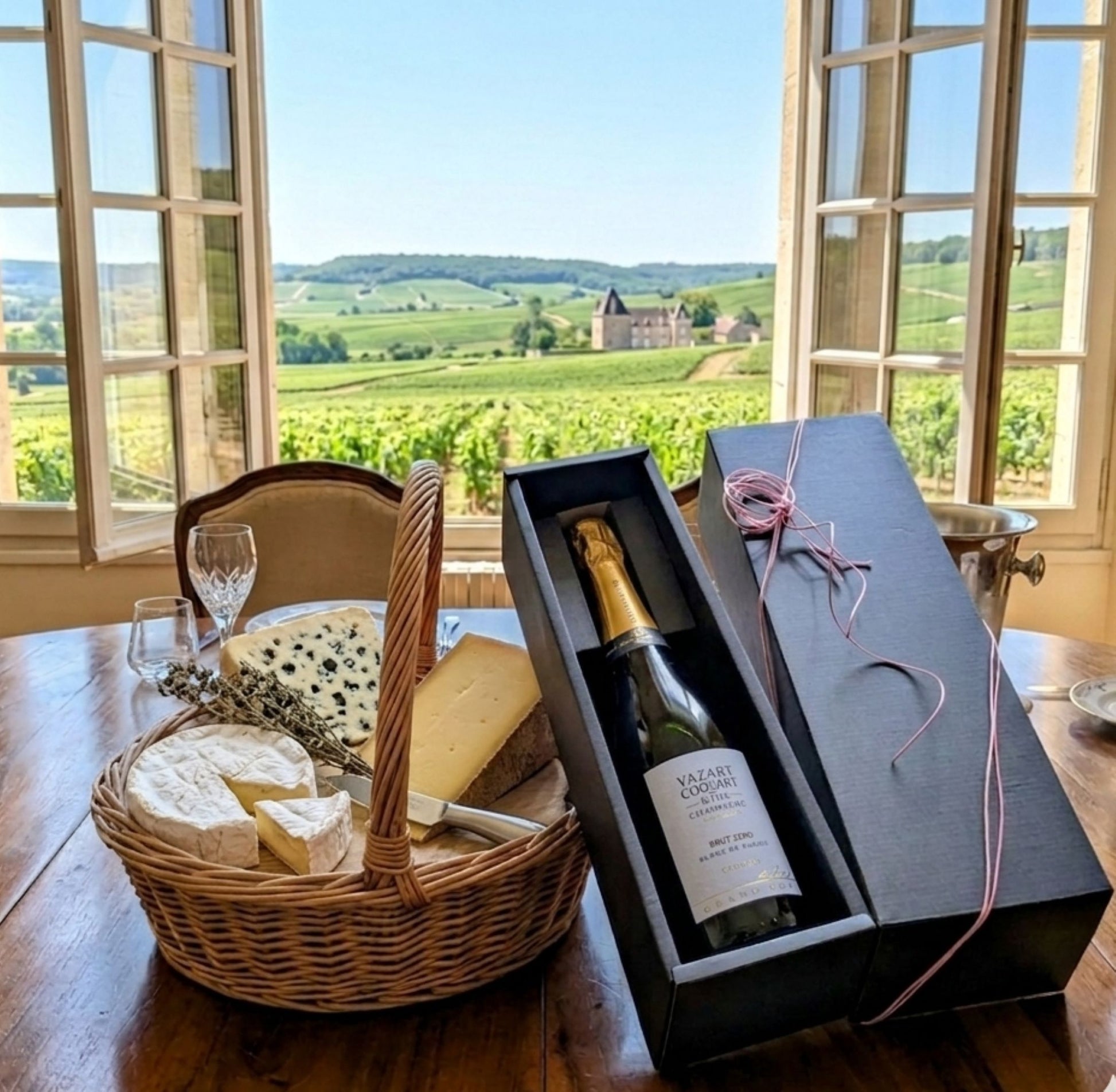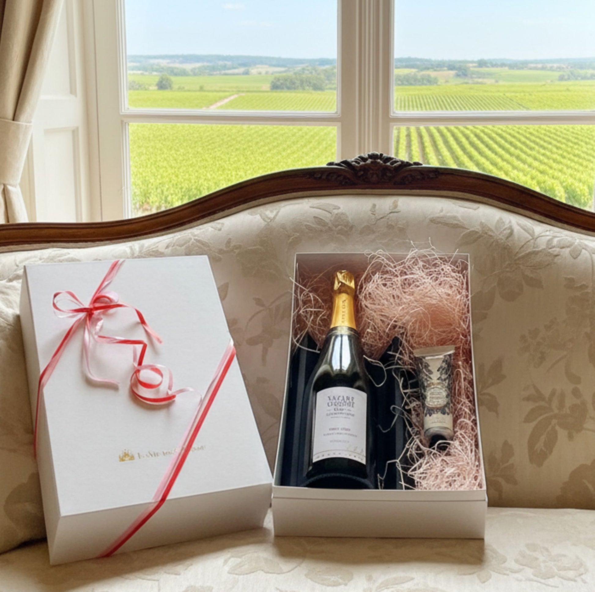 シャンパーニュの中でも最高格付け「グラン・クリュ」に認定されたコート・デ・ブラン地区シュイィ村のシャルドネの真體を表現するRM「ヴァザール・コカール」と、プロヴァンスの精油をふんだんに取り入れた「パニエデサンス ハンドクリーム」のギフトセットです。
